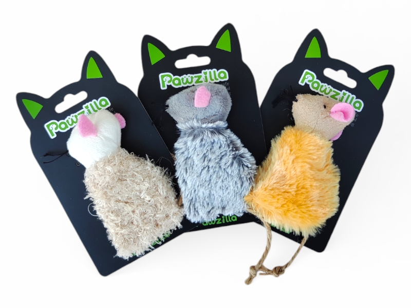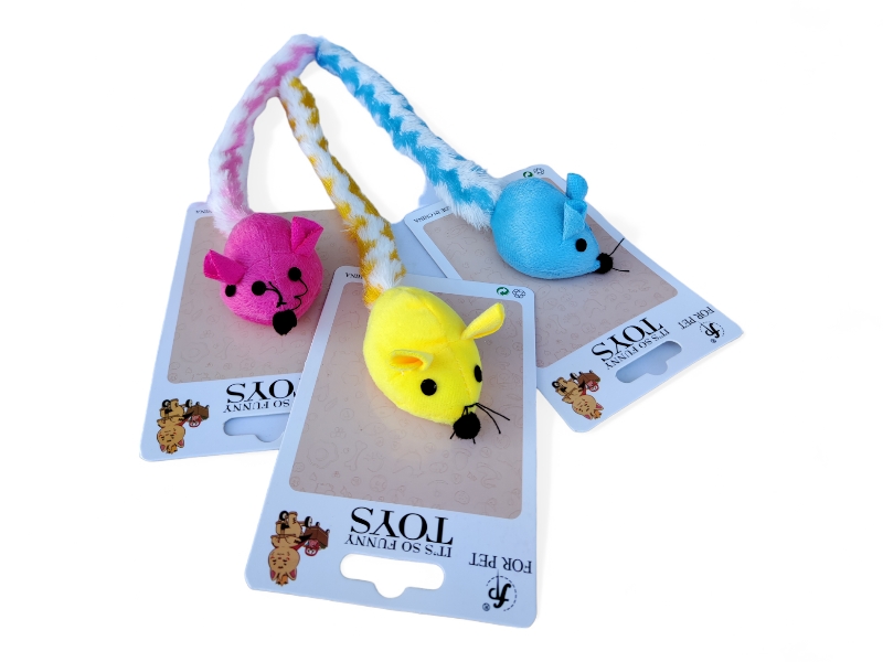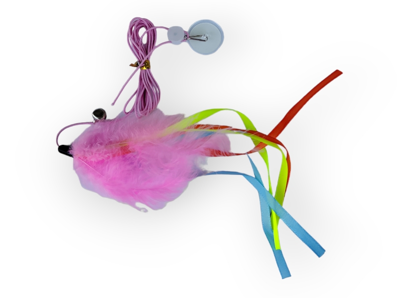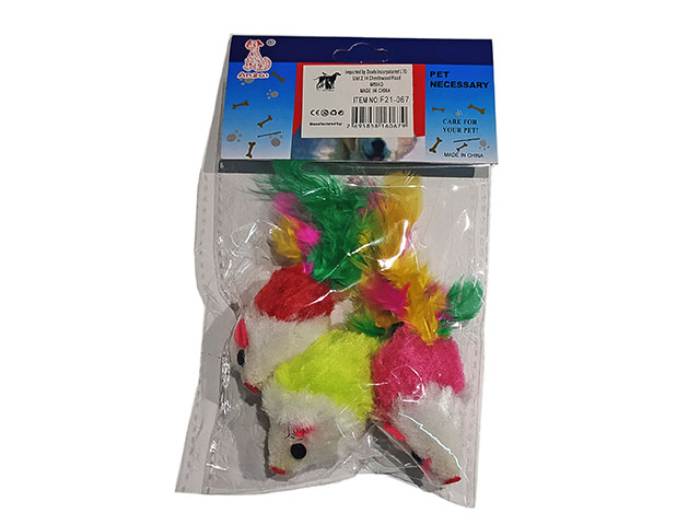 Мышь мех с перьями, 10см, уп-3шт, (41283)