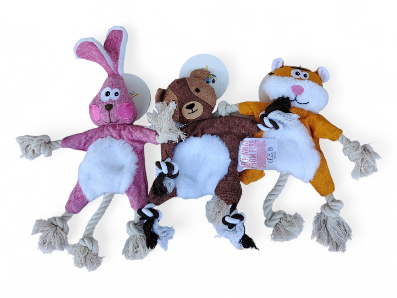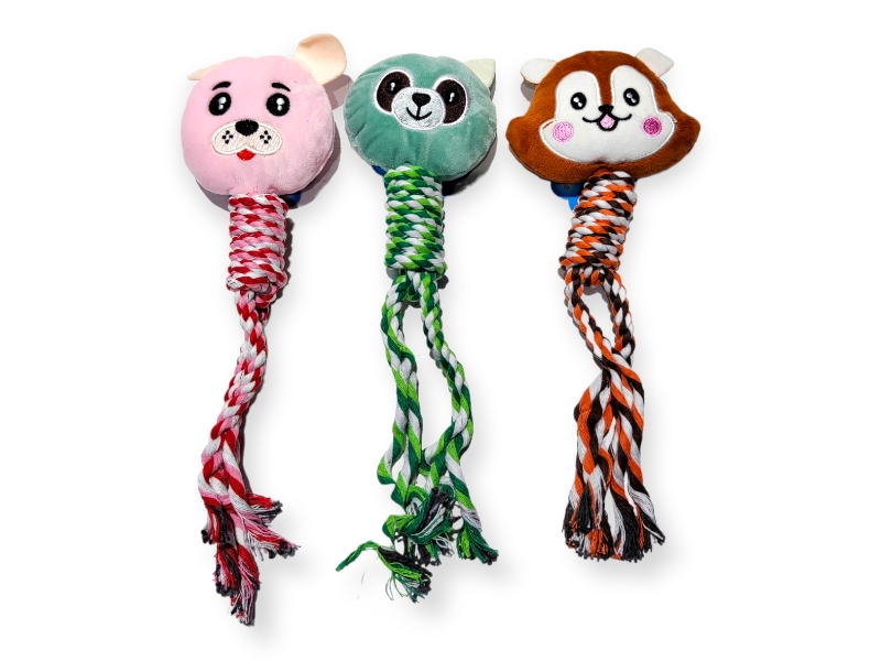 Мягкая игрушка, плюш + веревка, с пищалкой, разн цв, 30*10см, (41320)